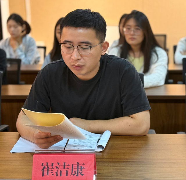 研究生党支部书记许中美、组织员张雅琪结合《中国共产党发展党员工作细则》等要求规定,强调了发展党员工作的总要求,并详细介绍了发展党员的五个阶段、二十五个步骤,从申请入党、入党积极分子的确定和培养教育、发展对象的确定和考察、预备党员的接收、预备党员的教育考察和转正等每一个环节都进行了具体说明。