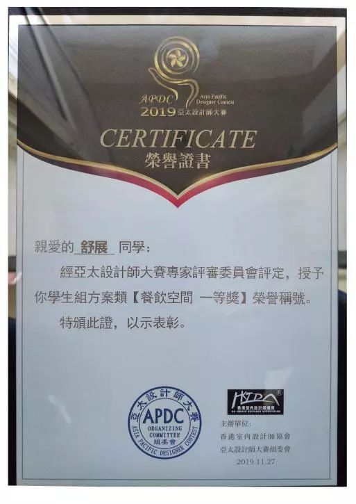 1、2019亚太设计师大赛员工组“餐饮空间方案类”一等奖