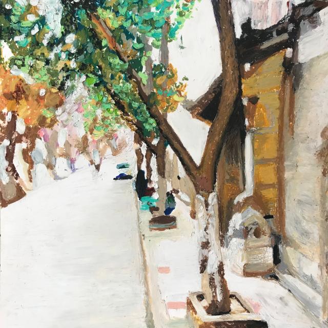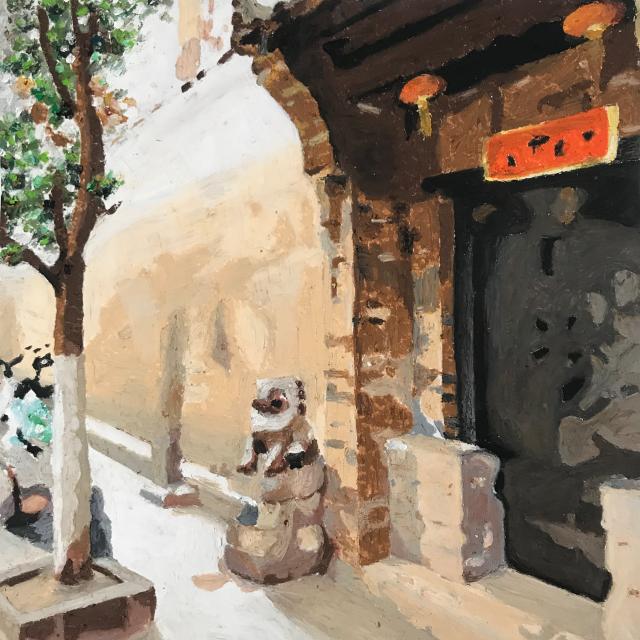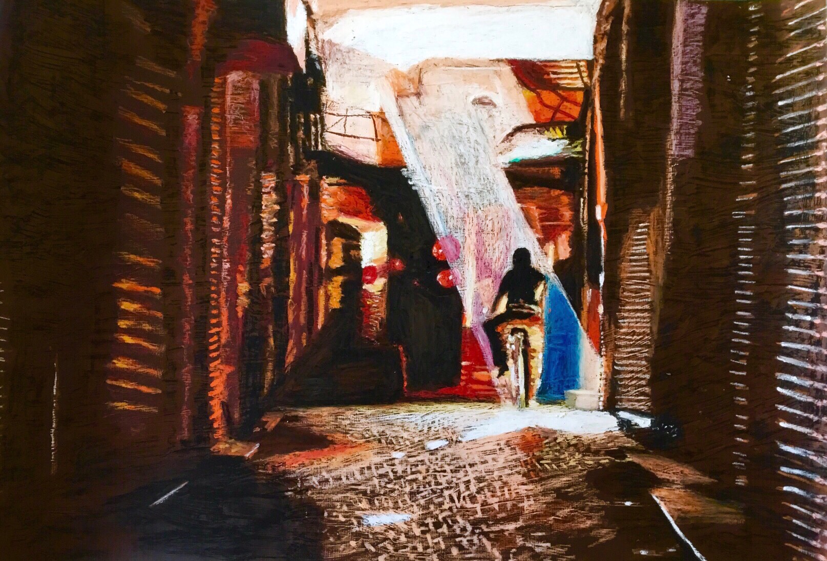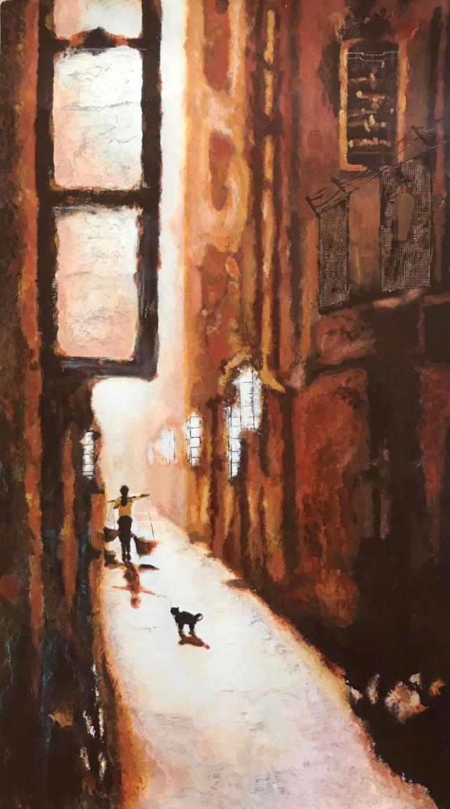 油画棒 丙烯《巷口记忆·之晨》 76*108cm