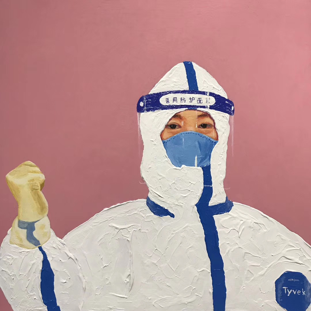 油画棒 丙烯《最美逆行者》之三 20*20cm