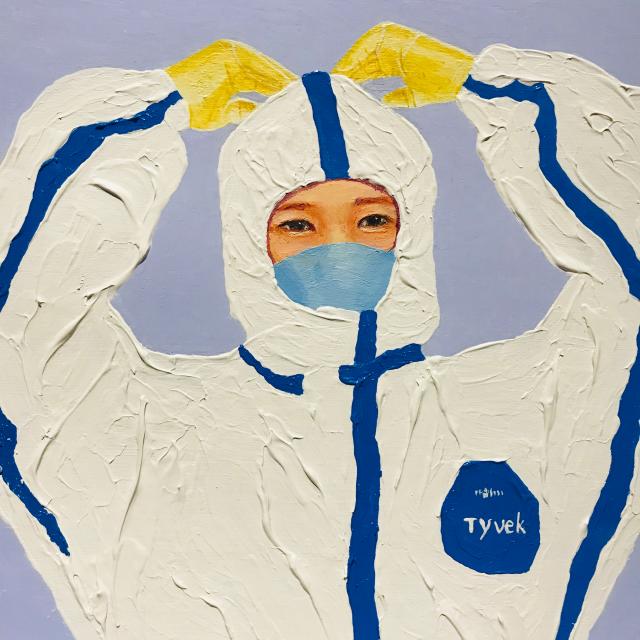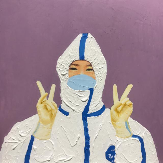 油画棒 丙烯《最美逆行者》之一 20*20cm