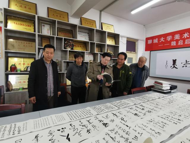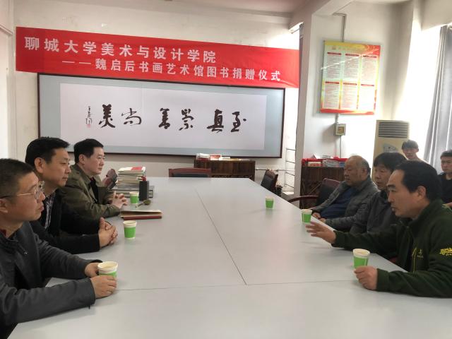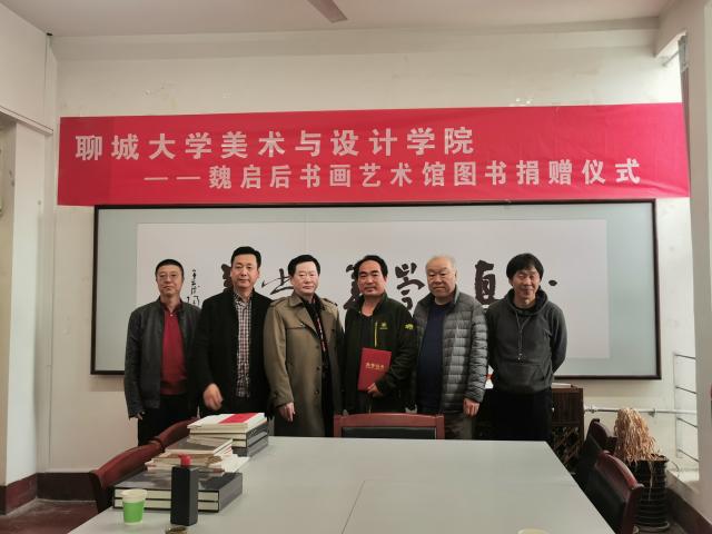 2021年3月31日下午,在公海gh555000aa线路检测三楼会议室举行“公海gh555000aa线路检测—魏启后书画艺术馆图书捐赠仪式”, 公海gh555000aa线路检测经理、 硕士生导师钱品辉,公海gh555000aa线路检测副经理、硕士生导师张函,公海gh555000aa线路检测硕士生导师、聊城市书法家协会主席方建光以及2020级书法研究生参加本次捐赠仪式。