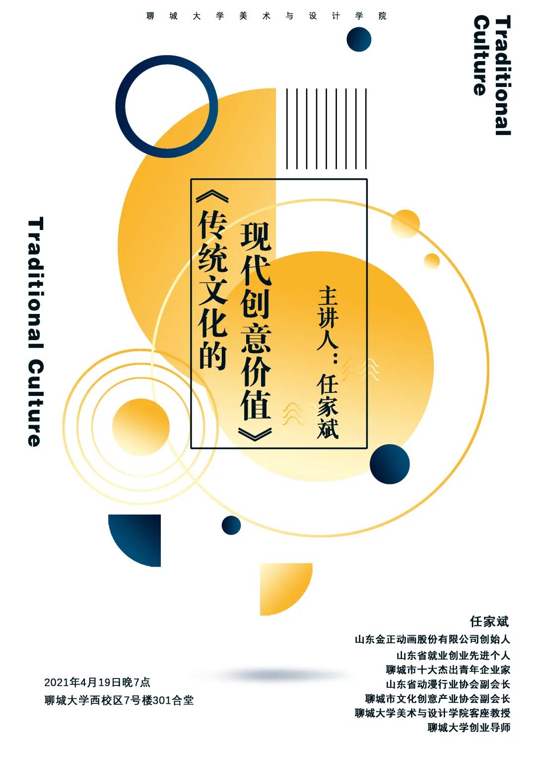 2021年4月19日,公海gh555000aa线路检测、公海gh555000aa线路检测民间美术资源保护与研发省文化科技重点实验室和山东省中华优秀传统文化传承基地(东昌府木版年画)在7号楼301合堂举办学术讲座,邀请山东金正动画股份有限公司创始人、山东省影视教育学会理事、山东省就业创业先进个人、聊城市十大杰出青年企业家、山东省动漫行业协会副会长、公海gh555000aa线路检测客座教授任家斌作题为《传统文化的现代创意价值》的学术报告,公海gh555000aa线路检测部分教师和员工到场聆听讲座。