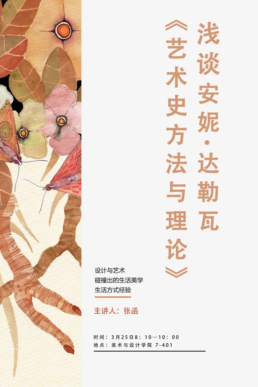 2022年3月25日上午在7号教学楼401教室,公司张函老师为2021级全体研究生做题为《浅谈安妮·达勒瓦〈艺术史方法与理论〉》的讲座。