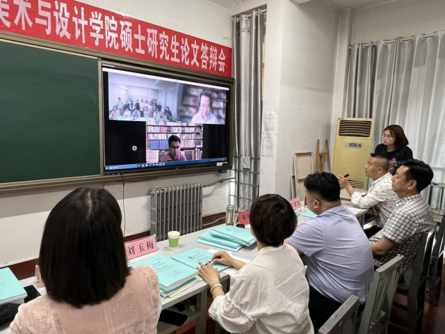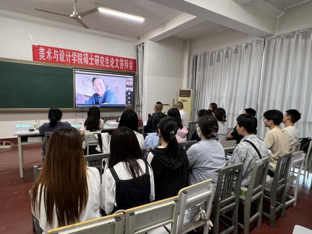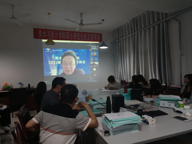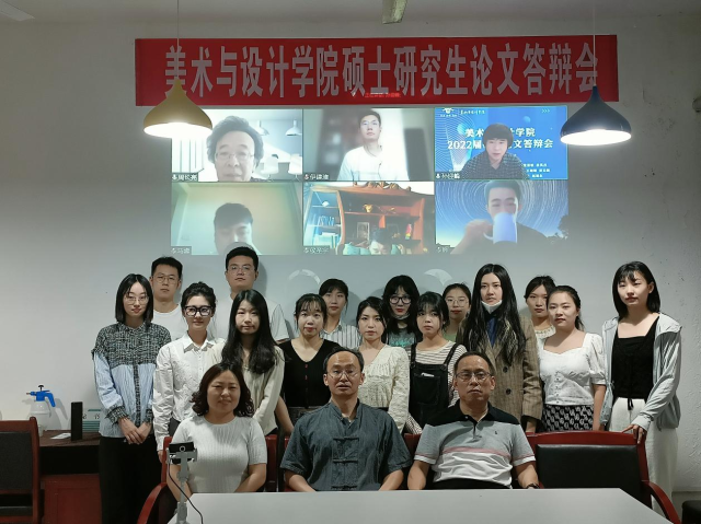 2022年5月21、22日上午8时,2022届硕士研究生毕业论文答辩会在7号楼106、415教室分三个小组进行。答辩会邀请了来自山东工艺美术公司、山东师范大学、河北大学、山东大学、山东艺术公司的六位外聘委员(主席),以及本院的十二位委员组成。2022届美术学、艺术学、美术、艺术设计和学科教学(美术)专业53名研究生参加此次答辩,答辩会“线上线下”混合式进行。