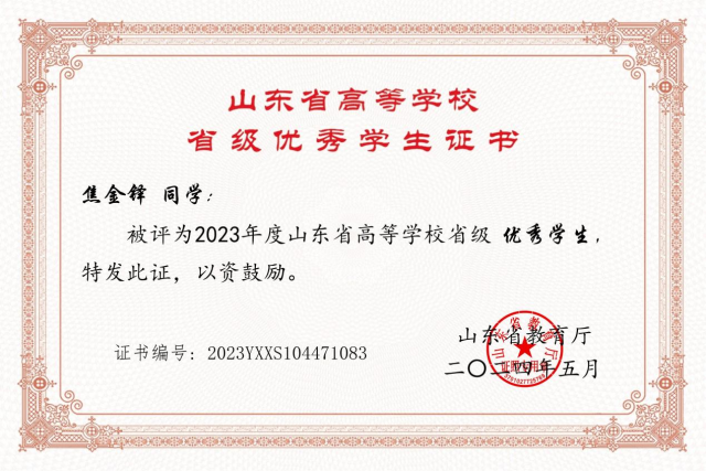 2024年5月荣获山东省高等公司“优秀员工”;