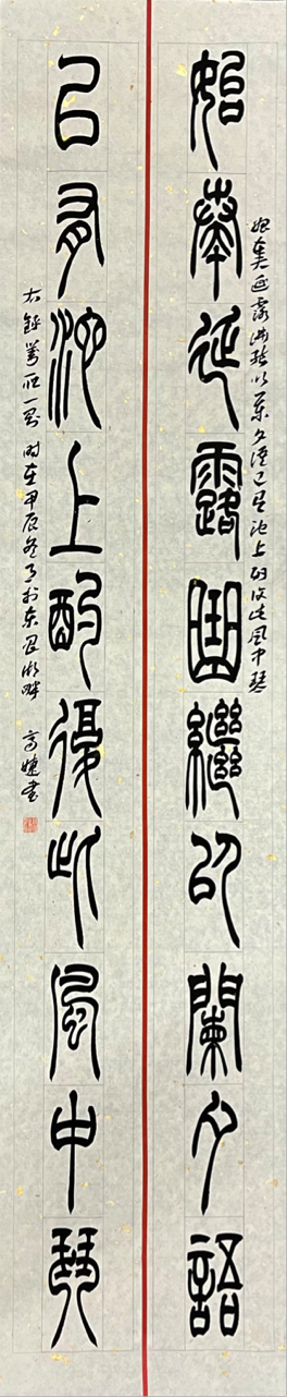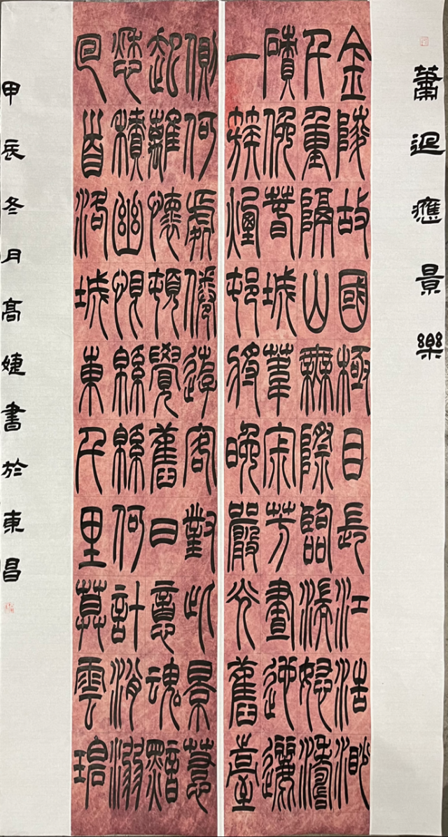 2024年1月作品《垂手扪心联》荣获山东省第七届老员工艺术展演书法和篆刻乙组二等奖;