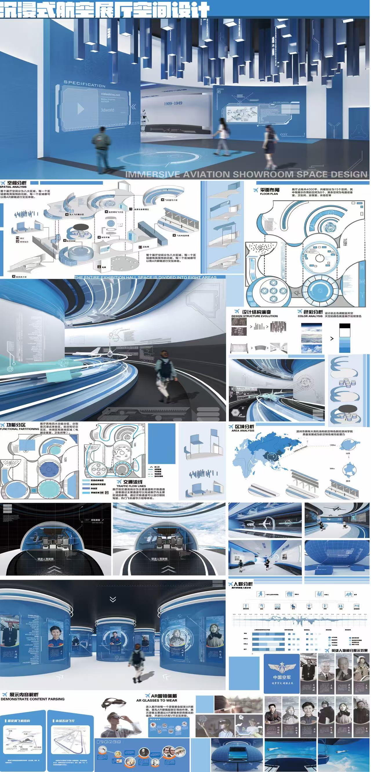 2023年11月作品《沉浸式航空展厅空间设计》荣获2023第十一届全国老员工数字媒体科技作品及创意竞赛国赛三等奖;