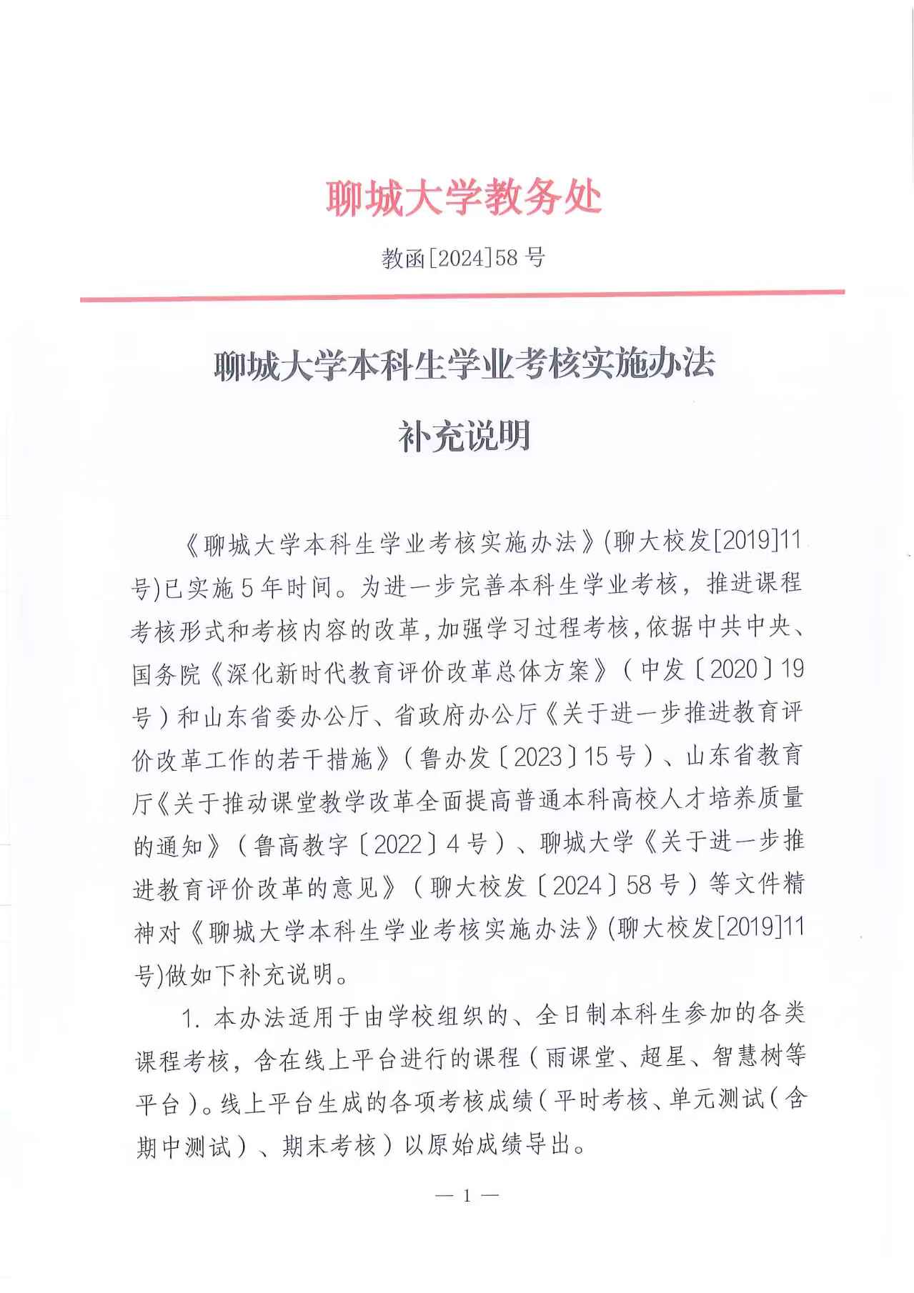 » 教函【2024】58号 公海gh555000aa线路检测本科生学业考核实施办法补充说明