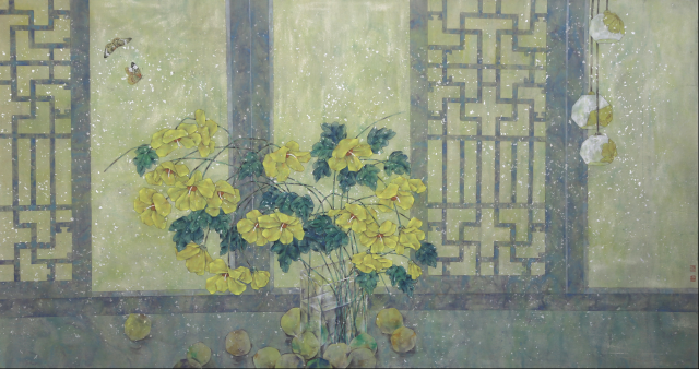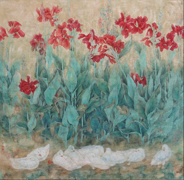 国画历经上千年的生长与传承,高峰迭出,璀璨光耀。但自近世西风东渐,西方美术思想和技法的逐渐渗化冲击,画者于传统表现的文化自信开始彷徨纠结,对此潘天寿先生提出了“传统出新”的理念,师古人师造化,外学内省,中得心源,继承传统,熔古铸今。陈艳很好的践行了这条艺旨,她取法宋元,苦究画理又面向生活,注重笔墨表达的锤炼和形式语言的推敲设立。她的写意不仅有对传统的继承摹古,更根据自身个性对古人的图式笔墨进行取舍,淡墨轻岚以点为皴,渲染出平和天真的古淡况味,可谓“澹如秋水,和似春风”,给人一种远离尘世喧嚣的静谧之感。张彦远《历代名画记》中指出:“夫画者,成教化,助人伦,穷神变,测幽微,与六籍同功,四时并运,发于天然,非由述作。”我亦认为中国画家籍以自立的绝不是单纯的绘画技术,更多的是情怀、胸次和学养。她在承袭传统笔墨的同时,未敢忽略画外功夫的修炼,静读诗书,临习小楷,成为她的生活常态,女子安静温婉的心性更好地滋益了笔下的水墨氤氲。纵观中国的历史,工笔的高峰巍于两宋,徐黄体貌流传千年。陈艳的作品亦溯源于宋画,然并非一味泥古勾摹,更广泛吸收各种营养,参以个人的审美与视角,在形式材料上进行了深入探索,线条的确定有力,赋色的素雅应心,结构的精准得当,构图的自出机杼,无一不透露出扎实的传统基础,取得了极好的成绩,作品9次入选中国美术家协会主办的展览。