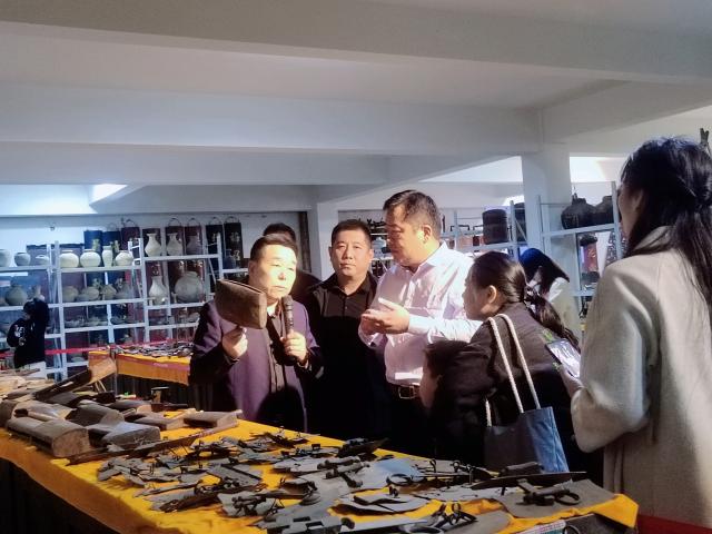 山东乡忆民俗文化有限公司董事长、中国文物学会民族民俗文物专业委员会副主任委员韩光友接待了考察团,并亲自讲解了老行当中的九佬十八匠、民俗八不语、十二不吆喝等藏品。考察期间,双方举行了公海gh555000aa线路检测实习实践基地、黄河学研究院文化遗产研究基地挂牌仪式,并就后期合作的具体事宜进行了沟通,达成了初步的合作意向。