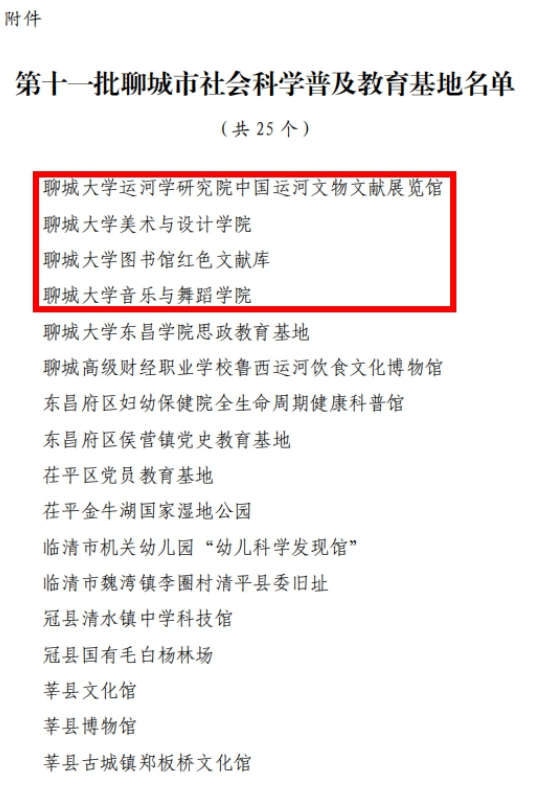 日前,中共聊城市委宣传部、聊城市社会科学界联合会联合公布第十一批25个聊城市社会科学普及教育基地名单,公司成功获批。