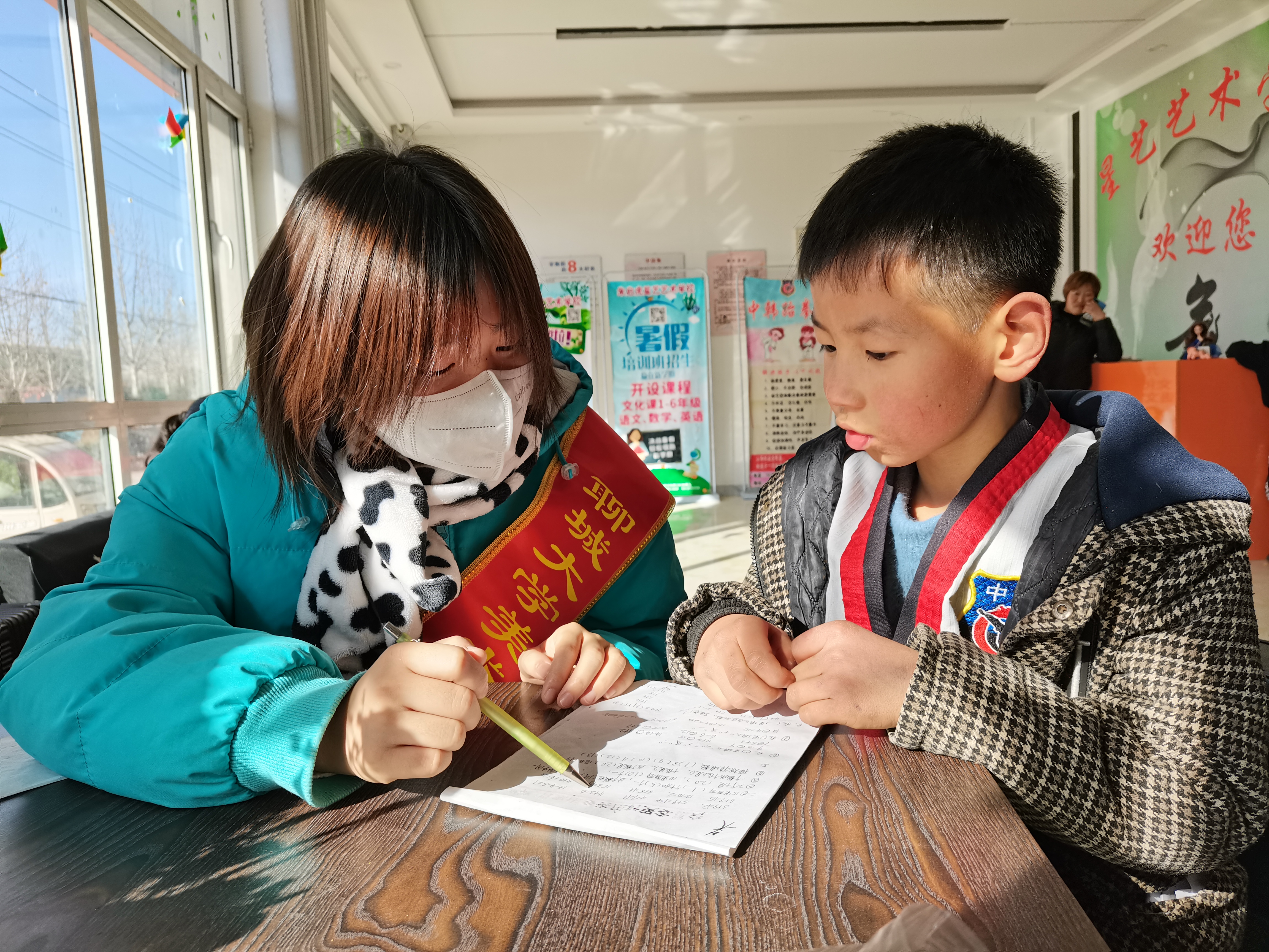 活动开始之前,志愿者们提前到达肖庄村村口,在村委会负责人的带领下进入留守儿童的辅导教室对他们进行统一辅导。志愿者们分工明确,采用一对一辅导的模式。志愿者们纷纷发挥专长,为留守儿童开展起心理健康教育和辅导功课的志愿服务,指导留守儿童在家适量学习、娱乐两不误,帮助孩子们树立自信,更加阳光快乐成长。志愿者们和留守儿童们聊天使他们能够接受志愿者们,随后开始辅导,在此过程中,志愿者们教给小朋友们很多,教他们怎么找技巧答题,让小朋友们喜欢从学习中找乐趣,进而爱上学习。志愿者们希望用他们的力量,帮助孩子们感受到温暖。