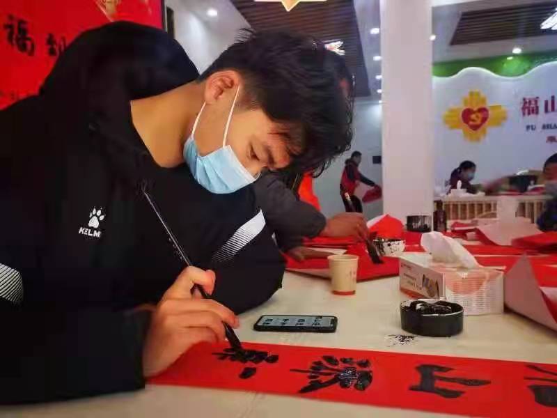 为弘扬中华传统文化和民间艺术精神,新年新气象,新春问候,祝福永存在,从而表达党对国家的热爱之情。公海gh555000aa线路检测“民艺•承”志愿者服务队开展“执笔书新年,鸿运赠老人”返家乡社会实践活动。