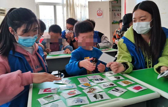 在活动开始前志愿协会成员首先在天使之翼康复中心与相关负责人了解了自闭儿童的相关情况,在活动正式开始后,志愿者们拿出了印有四季服饰的卡片,围坐在每一个孩子周围,耐心地向孩子们介绍不同种类的服装,并向孩子们介绍服饰对应季节的变化。在整个活动中,面对这些天真烂漫的孩子,每一名志愿者都耐了下心,坐在孩子身边一边,一遍又一遍地介绍各种服饰。在面对其中一个孩子的自言自语时,孩子的母亲对志愿者们说:“你们对他严厉点没关系的。不严不听话。”但志愿者们仍然耐心地教孩子。随后,志愿者们用自备的画笔协助孩子们画出不同颜色的服装,在这一过程中,孩子们展现出了天马行空的想象力,在画一个小熊外形的帽子时,一个孩子直接画成了一只小熊,脸上带着快乐的笑容,志愿者们也面带微笑,眼神中流出温柔的眼神,场面十分的温馨动人。在活动结束后,志愿者们主动留下了,帮助打扫卫生,与孩子做了道别后离开了。