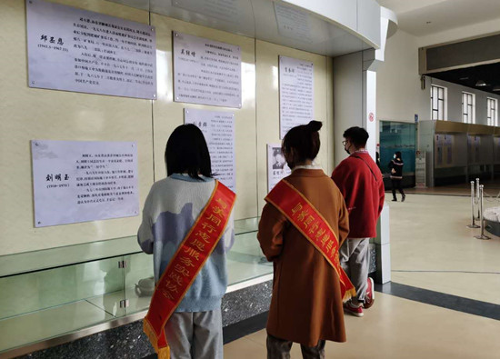 活动前期,志愿者事先与纪念堂工作人员协商,集结参与人员,做充分的好准备。志愿者自觉整理着装,带着庄严的面容,有序进入烈士陵园纪念馆。受疫情影响,志愿者自觉戴口罩,配合工作人员进行测量体温。进行参观过程中,所有志愿者保持安静,对每一位先辈保持着崇高的敬意,对每一位烈士简介进行仔细阅读。馆内摆设的红缨枪墙头、马灯、82破击雷炮、长军号等,给大家留下了深刻印象。面对着一件件先辈的作战工具上的斑驳痕迹,同学们更加为之敬佩。志愿者们一同参观革命烈士英明碑,相互交流,面对碑上的每一个名字,更加动容。活动最后,志愿者进行拍照留念。