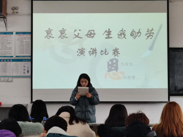 活动初始,主持人就“父母的爱”为切入点,用播放纪录片的方式帮同学们打开思绪。当患了绝症的母亲和刚出生的孩子相遇,母亲在生命中余下不多的时间里为自己的孩子留下了直到成年之后的视频和生日礼物,《人间世》这部纪录片将亲情展现的淋漓尽致,通过感人而又真实的故事,让同学们更加理解父母的艰辛与苦楚,重拾生活中被忽视的教诲与关怀,随后,主持人让同学们放下拘谨,分享自己与父母在一起难忘的经历和写下想说的话。同学们纷纷上台进行演讲,用独特的视角来讲述和父母的丰富生活,每个同学与父母过往的点滴,汇成了大海,浪涛拍击在同学们的心上,让同学们在讲述的过程中一度哽咽。“纵使是丹青高手,也难以勾勒出您那坚挺的脊梁:即使是海纲百川,也难以包罗尽您对儿女的关爱!”心形便签上写满了同学们对爸爸妈妈真挚的感恩话语,同学们感恩的心,并没有因为冬日的寒冷而黯淡。在场所有人被故事深深吸引,从中也促使同学们理解父母对自己的关怀和包容,温暖的气氛弥漫在会场的各个角落。