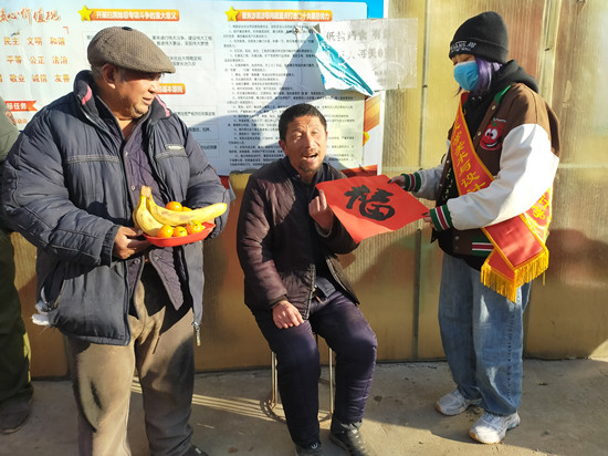 “只要人人奉献一点爱心,世界将会变成美好的天堂”,在志愿者到达养老院后,负责人组织志愿者们两人一组打扫养老院的卫生,清除院子里的杂草和垃圾。使杂乱的院子焕然一新,随后志愿者给老人们讲述校园里面有趣的生活以及外面发生的新鲜事情,还有一些防疫的小知,志愿者与老人们相互交流并耐心倾听老人们所讲的故事,了解到老人们年轻时候的故事,还有一些他们那个年代的有趣事情,体会着时代的变迁。随后在敬老院开阔地方,志愿者为老人们分发水果,为老人们沏热茶。并与老人们一起写春联,志愿者们把写好的春联送给老人,并祝愿他们幸福健康,为他们带来快乐。写完春联之后,志愿者们还帮助养老院工作人员写疫情通告书,并帮忙贴在养老院大门口。时光飞逝,志愿者们转眼就到了要离开的时候,老人们依依不舍的和志愿者们告别,邀请志愿者一定要在来看望老人。