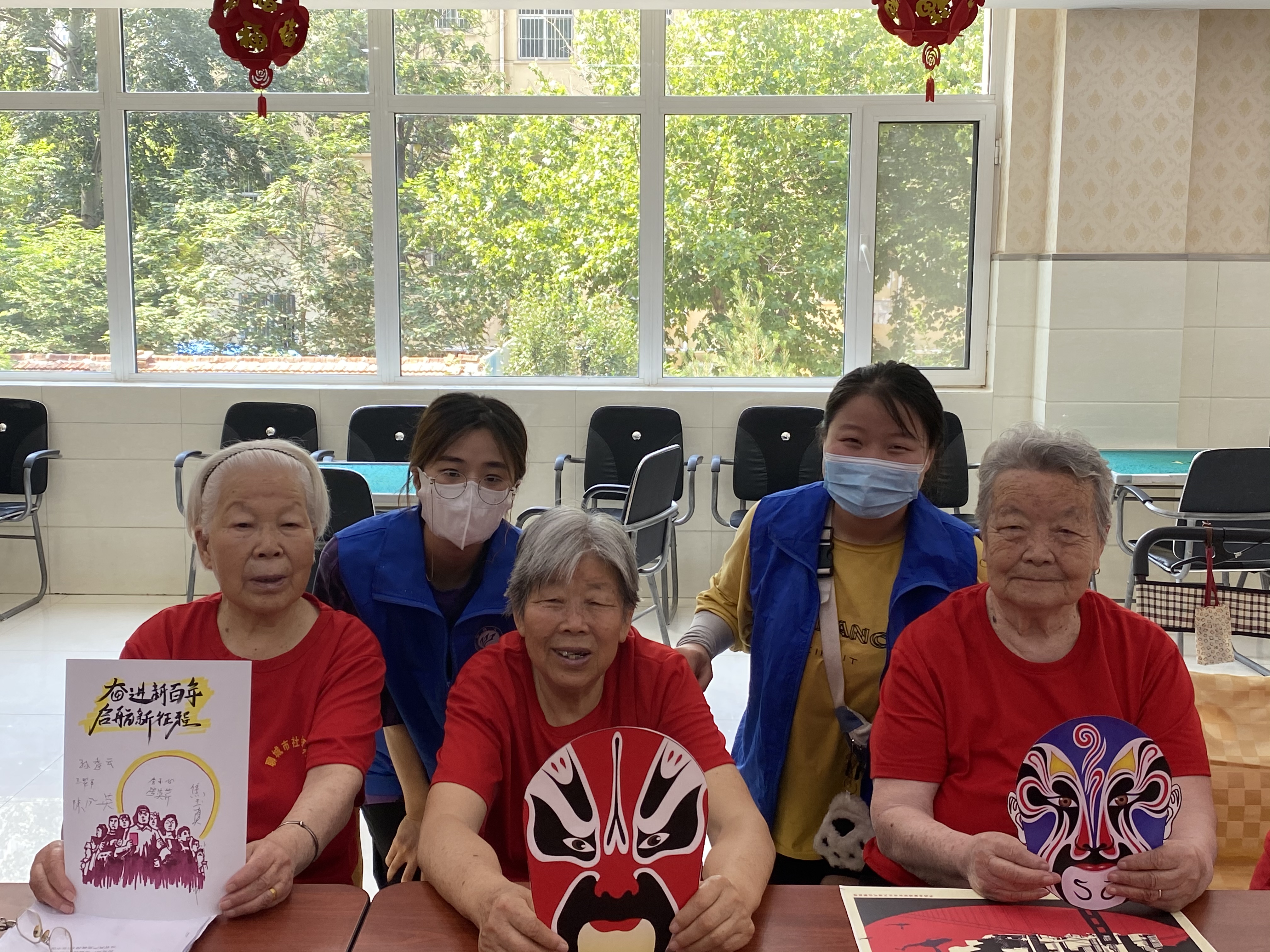 脸谱作为一种传统戏剧文化,被誉为“心灵的书面”。此次活动以脸谱联系故事,结合党百年奋斗历程,进行党史里程碑人物脸谱绘制,与福利院的老人们一起回顾党的百年征程,聆听老人经历的沧桑岁月,与爷爷奶奶共同感悟社会主义新时代人民的幸福生活。志愿者们耐心讲解有关绘制脸谱的步骤及方法,并为老人们分发自己内心所喜欢的脸谱,每幅画面线条流畅生动、虚实相生,色彩鲜艳,将坚韧、刚毅的形象呼之欲出,老人们拿到脸谱便爱不释手。脸谱活动在志愿者和老人们的欢声笑语中顺利完成,老人们也非常热情的邀请志愿者们再来进行这样的活动。此次活动激发了青年一代传承红色基因,赓续革命传统的责任担当,把不负时代,不负韶华,不负党和人民的殷切期望转化为奋斗的动源泉,在学习和实践中培植爱党爱国爱人民的深深情怀。