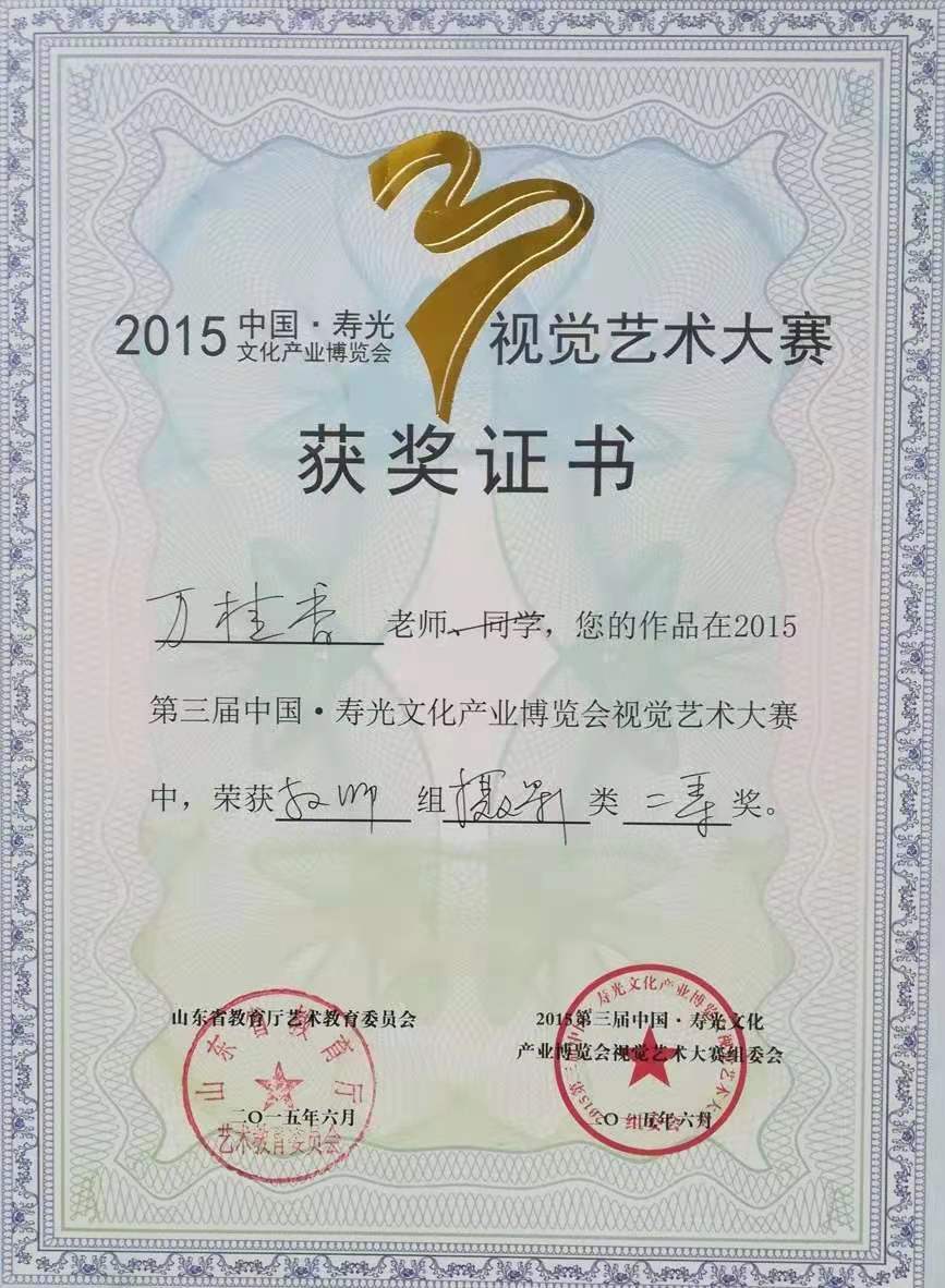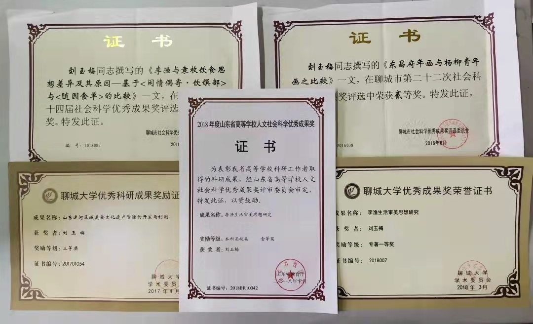 近年来,出版著作六种(合著),发表论文二十余篇,主持和参与纵横向课题三项,发明专利两项,外观设计专利两项,实用新型专利一项。曾获国际艺术和平展艺术和平大使称号,美国迪贝艺术家协会荣誉奖,中韩现代广告海报设计大赛铜奖,艺术百家年度作品奖三等奖,第三届山东省文化创新奖,山东省优秀书法作品展入展奖,公海gh555000aa线路检测哲学社会科学优秀成果二等奖。