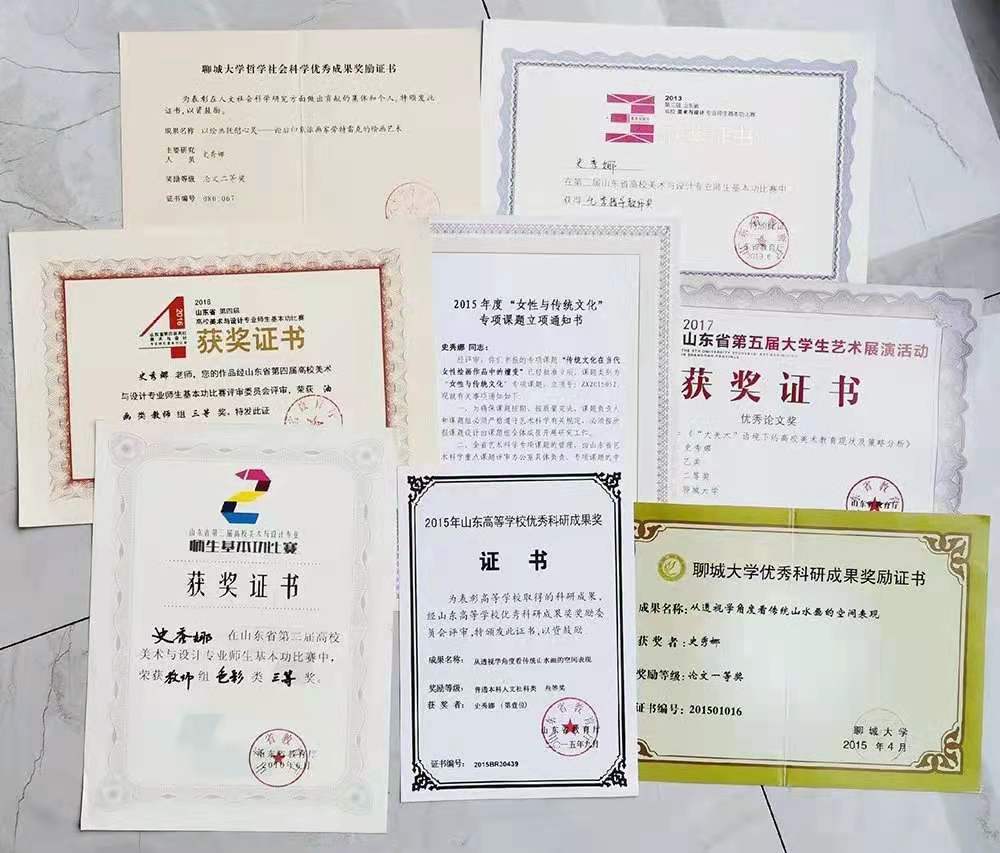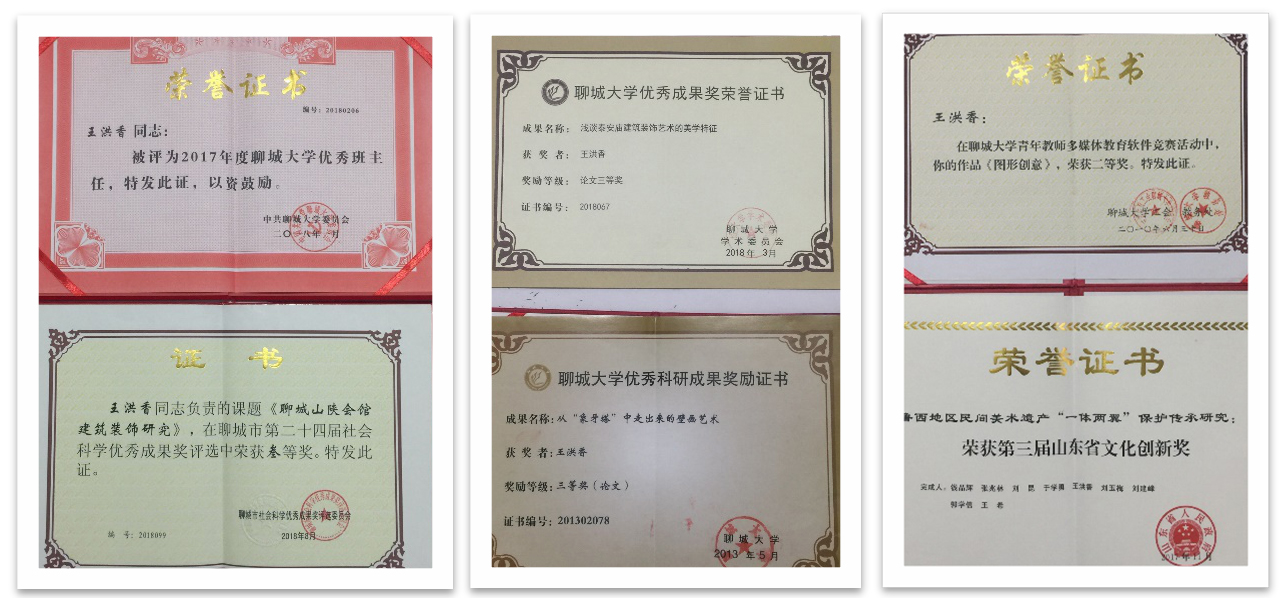 在山东省高校美术与设计专业师生基本功比赛、华东大奖、公司创意杯等省级以上专业比赛中荣获一、二、三等奖等各级专业奖项二十余项;在《出版广角》《新闻与写作》《艺术教育》等期刊发表文章14篇;主持山东省艺术科学重点课题和教育部产学合作协同育人项目各1项,参研省级、厅级教研、科研课题6项。