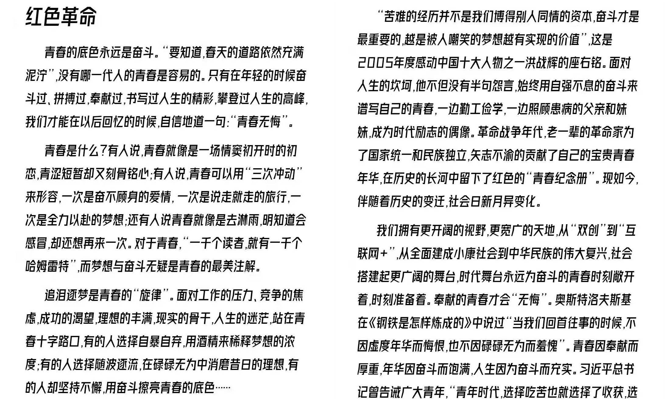 “一百年风雨兼程,一百年峥嵘岁月”,在党的百年历程中,涌现出众多一心为民的英雄人物,诞生出许多感人的红色故事,也孕育出无数红色精神。志愿者们对各位活动参与同学的征文作品进行线上汇总,同学们提前收集学习相关资料,在文章中讲述自己心中对祖国的热爱和对党的坚定向往,讴歌那些为了祖国的发展进步以及社会主义建设奉献自己的先进人物们,表达内心对红色故事的感动。在准备和写作过程中,同学们的爱国主义思想得到了进一步的加强,他们纷纷表示要向先烈们学习,做奋斗者,求真学问,练真本领,勇担责任,奉献国家,砥砺奋进新时代,为实现中华民族伟大复兴的中国梦接续奋斗。