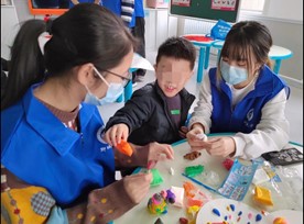 活动开始后,志愿者为大家观看本次活动制作完成的手工制品,并强调,新年即将到来,随之为大家准备粘土,动手制作新年物件。小朋友们充满期待,跃跃欲试,并在志愿者的帮助下用轻粘土,捏出饺子和鞭炮的形状。小朋友们包的每个饺子都包含了对祖国的热爱和深切的祝福,鞭炮更是对中华传统文化认识的体现。小朋友们看到自己包的饺子有模有样,兴奋不已,收好带有象征的新年作品,带给父母,表达祝福。