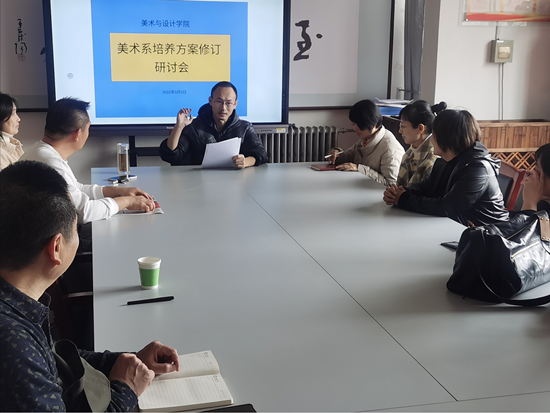美术学专业2022版培养方案修订工作已进入初稿修订阶段,3月3日,美术学专业全体教师在公司会议室召开研讨会,重点对课程设置与人才培养目标的达成度进行研讨,副经理史秀娜参加本次会议。