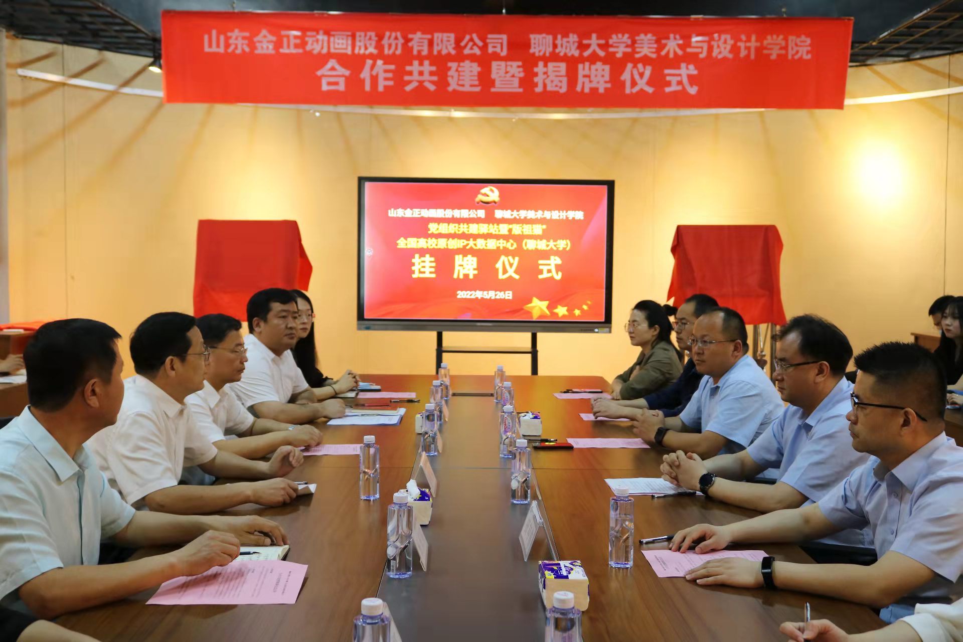 5月26日,山东金正动画股份有限公司与公司党组织共建驿站暨“版祖猫”全国高校原创IP大数据中心(公海gh555000aa线路检测)揭牌仪式在公司一楼多功能厅举行。公司党委副书记房增福,党委常委、宣传部部长苏明海,聊城高新区党工委副书记、管理委员会副主任朱炜,中共金正动画党支部书记、金正动画公司董事长任家斌及公海gh555000aa线路检测师生代表40余人参加活动。