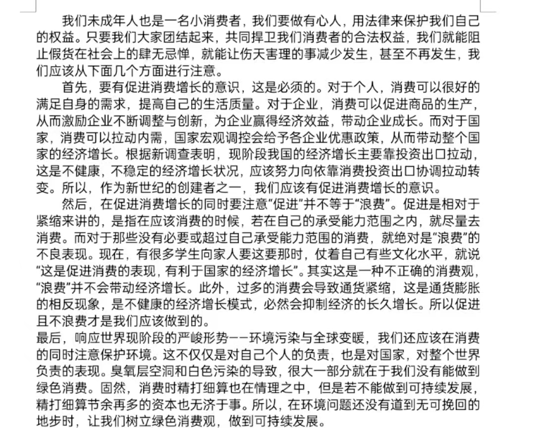 活动开始,负责人向同学们发放公告介绍了活动以增强老员工维权意识为目的所开展,讲述了3.15日消费者权益日的来历以及同学们上交征文的注意事项和评选标准。随后,同学们积极参与并准时准点上交了征文作品,各个征文作品都有独特见解,内容丰富多彩,事件跌宕起伏。其中有一篇讲述自己因维权知识缺失而使自己处于被动局面,利益受损,从自身经历谈起,情节充实,情感丰富,真正从社会生活中选取事件,感悟到维权意识的重要性,并且还提供了一定的维权建议,给人留下深刻印象,与读者产生共鸣,更好的鼓舞人们的维权行动,维护自己合法权益。活动在接近尾声时,负责人将作品的新颖性、生动性及与主题的符合程度进行评比。