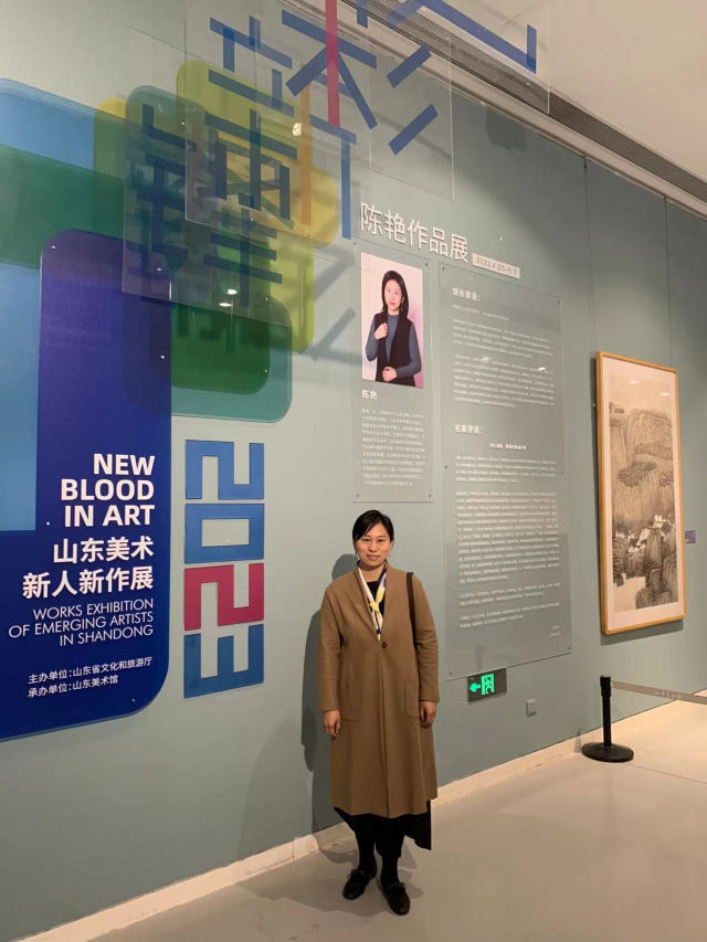 “艺彩新锋——山东美术新人新作展(2023)”是由山东省文化和旅游厅主办、山东省美术馆协办的年度展览,以扶植青年美术人才,推动山东美术创作为宗旨,自2016年以来共举办过五届,是山东美术界的重要展览品牌。山东省美术馆馆长杨晓刚及山东艺术公司沈光伟教授对陈艳老师作品做出高度评价,认为其“寓奇于正”“平淡秀润”。