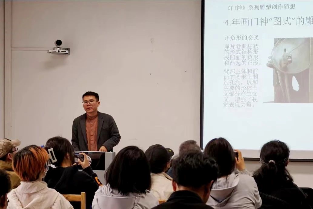 由山东艺术公司主办,山东艺术公司美术公司承办的“山东省高等院校材料艺术教学研讨会”于2023年4月25—26日在山东艺术学经理清校区举行,同时举行相关展览与演讲活动。公海gh555000aa线路检测副教授、黄河学研究院研究员张西同参加了研讨会并应邀做了《“门神”雕塑创作随想》的专题讲座。