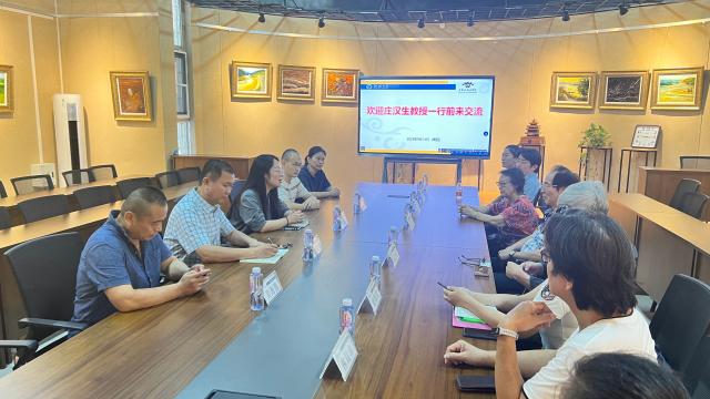 公司党委书记杨庆实、副经理史秀娜与教师代表在公司多功能厅庄汉生教授一行进行座谈,向来访客人介绍了公司总体架构、专业特色及发展方向。双方就高等美术教育、艺术创作等方面进行了交流。