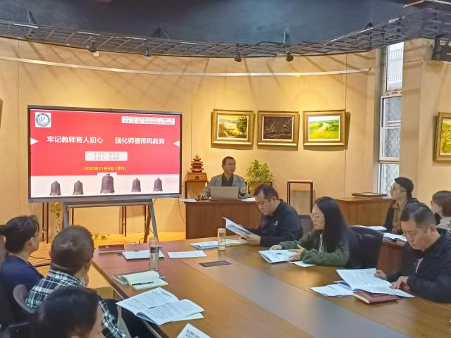 首先杨庆实从高校师德师风教育的重要性和紧迫性引入,强调高校根本任务是立德树人,教师的道德品质和职业操守直接影响员工的道德素质和品德修养,随后他从加强和改进新时代师德师风建设规章制度、全国教师师德师风违规案例、全国高校教师职业行为十项准则典型案例、全国教育系统行为不检典型案例和公司加强师德师风要求和建议5个方面带领学习制度文件并通报典型案例,最后他要求全体教师牢记身份和职责,不断提高自身道德修养,真正做到言传身教。张兆林强调全体教职工要把师德师风摆在首位,认真落实立德树人根本任务,提升责任感和使命感,用真心呵护员工,用大爱书写教育。