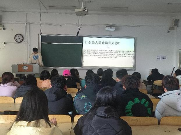 组织者通过讲解ppt,播放视频等方式让同学们轻松的了解到构建人类命运共同体精神的内涵。活动展开期间,活动组织者从构建人类命运共同体的内涵、建设成果、发展机遇、推动建设四个方面展开,又延伸阐述了人类命运共同体的益处。组织者还为大家播放了纪录片《这就是中国》,面对世界风云变幻,中国推进“构建人类命运共同体”建设不是一枝独秀,而是开创合作共赢的新模式,同学们通过观看视频深刻了解了构建人类命运共同体以来人民生活的变化,生活水平的提高、对外联系的加强。