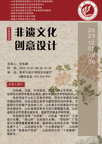 2023年12月1日上午,公海gh555000aa线路检测邀请山东师范大学学术委员会委员、赫尔岑国际艺术公司经理、博士生导师刘东峰教授,在公司一楼多功能厅作线上《非遗文化创意设计》学术报告。报告由非遗工坊研修班班主任刘昆副教授主持,研修班全体学员和公司部分师生40余人参加了报告会。