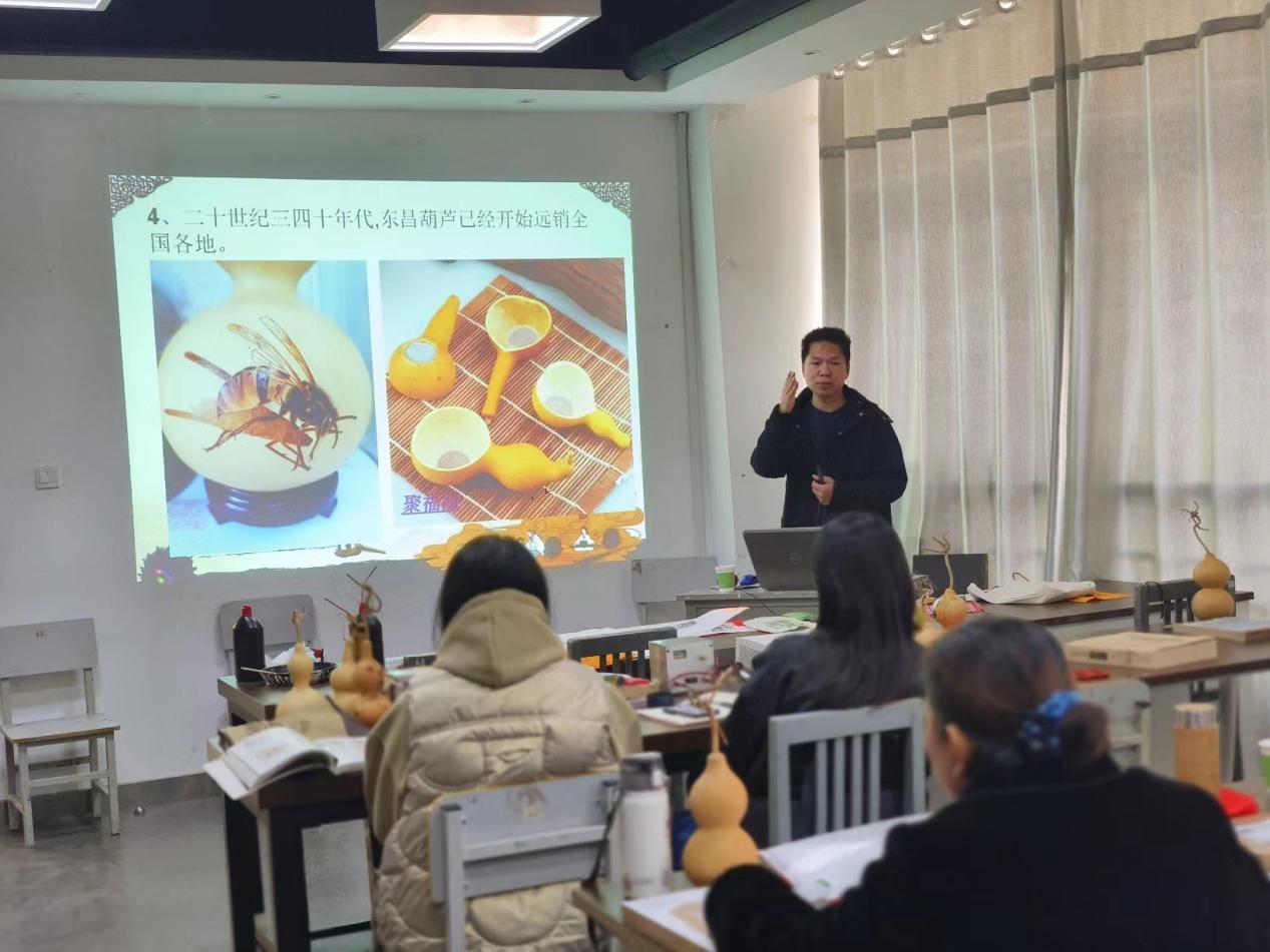 2023年12月4日,王树峰老师为公海gh555000aa线路检测非遗工坊研修培训班的学员带来了《东昌葫芦雕刻》的讲座与实操课程。