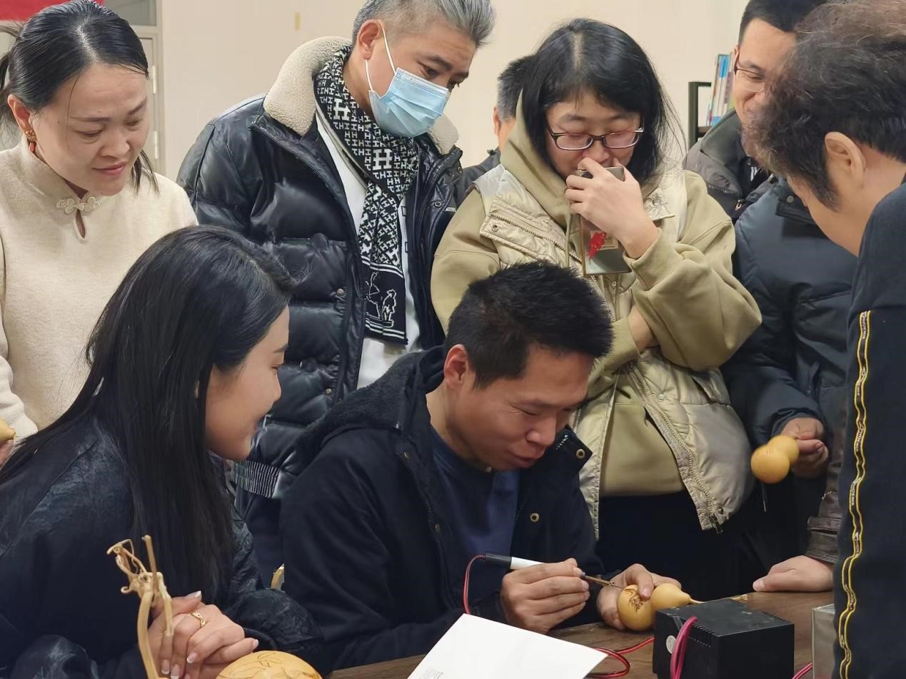 随后,王老师给学员们进行实操示范,讲解了葫芦的雕刻技法和烙印细节,通过此次课程的学习,学员们掌握了基本的葫芦雕刻技艺,对东昌葫芦雕刻有了更深层次的了解。