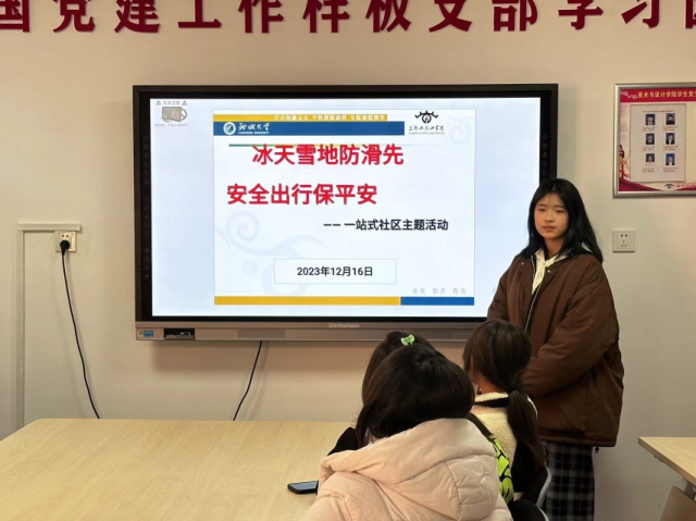 负责人以PPT的形式,向同学们宣传雪天安全基础知识,紧接着,由各小组分享雪天出行安全经验。着重强调了雨雪天气特点、外出步行骑行安全、冬季防寒窍门等小知识;在视频播放中,里面不仅包含了雪天交通事故带来的影响和危害,同时也介绍了雪天路面的危险情况和保暖措施,还总结了有关雪天安全出行的温馨提示。最后,员工们纷纷拿自己的亲身经历来当做案例,负责人为其答疑解惑和总结雪天出行安全经验后,并呼吁同学们要重视雪天出行的危险,保障安全出行;同学们对此表示赞同,并保证会向舍友和家人分享这些注意事项。