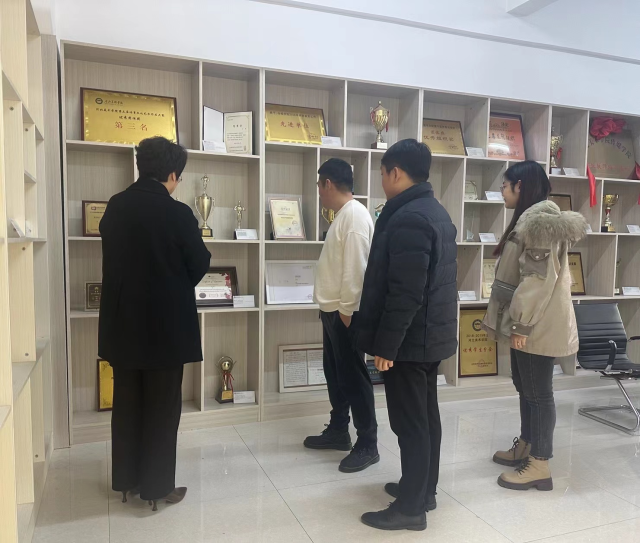 公司一行首先参观了河北美术公司影视艺术公司荣誉墙,王峰介绍了公司师生参赛的各项奖杯、奖状。