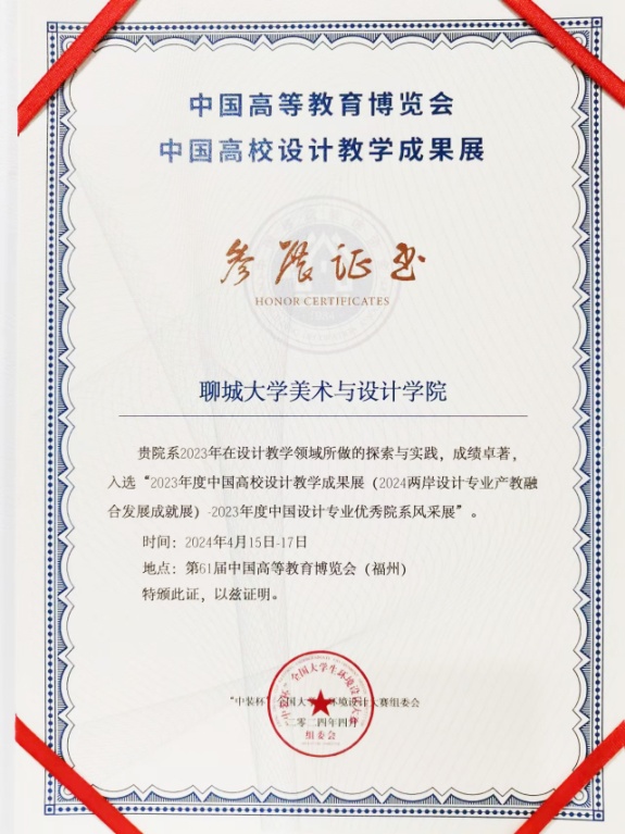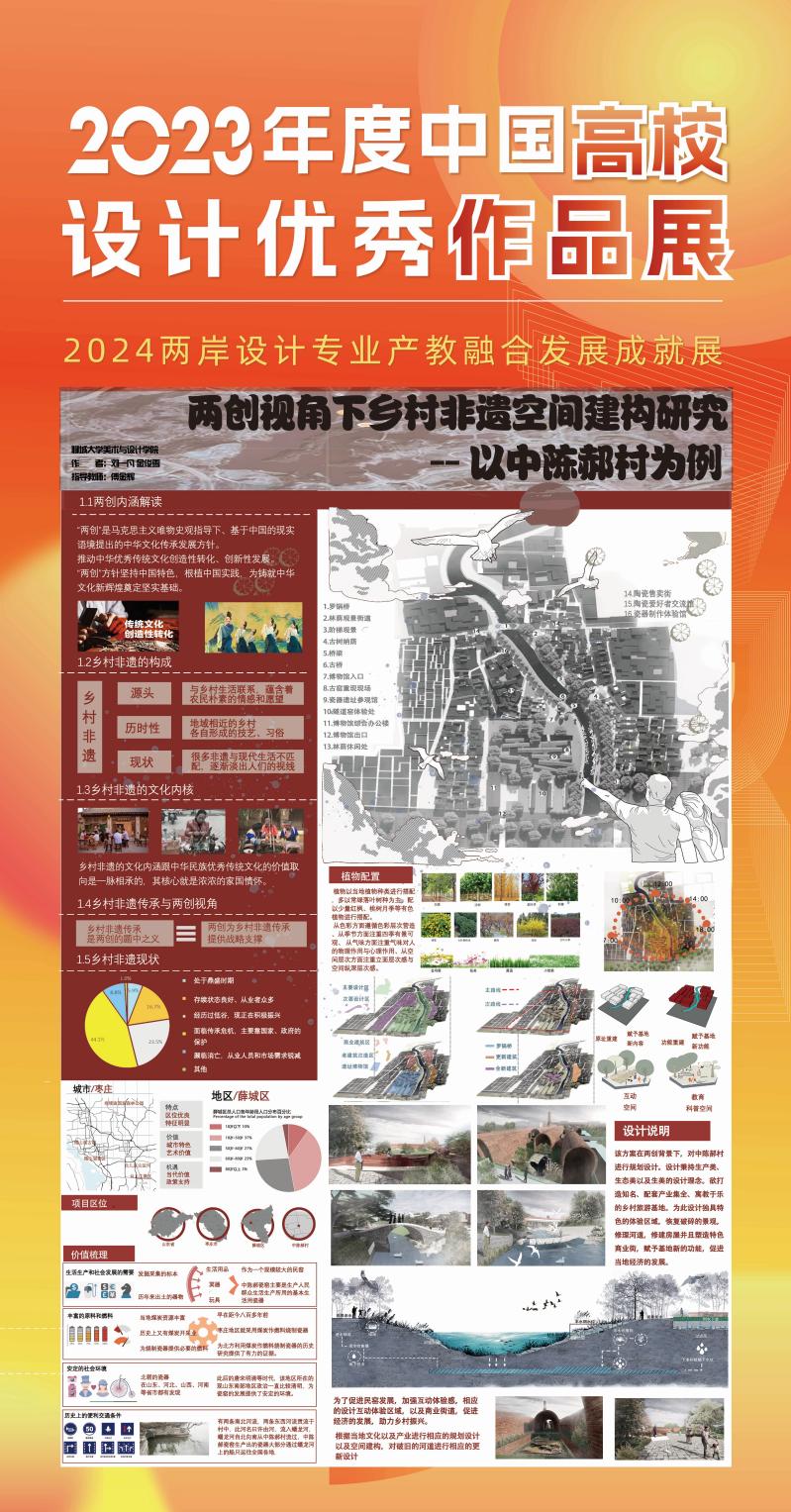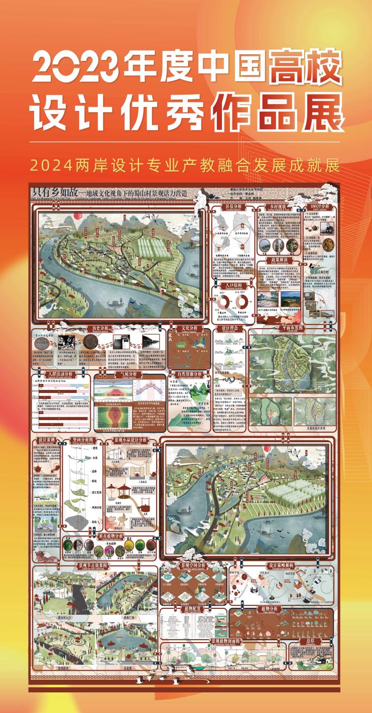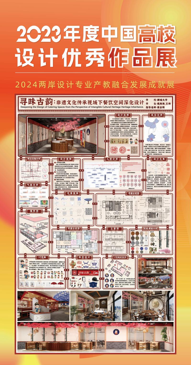 公司入选“2023年度中国环境设计专业优秀院系风采展/2023年度中国高校设计教学成果展”,环境设计专业获奖作品“寻味古韵:非遗文化传承视域下餐饮空间深化设计”“两创视角下乡村非遗空间建构研究—以中陈郝村为例”“只有乡如故—地域文化视角下的蜀山村景观活力营造”入选“2023年度中国高校设计优秀作品展”。
