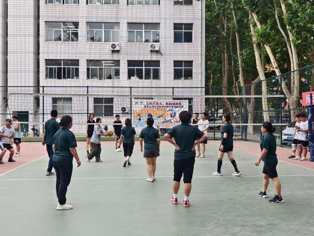 首先,活动负责人,组织排球队成员和老师到达比赛场地,开始了赛前热身。比赛开始前,负责人将比赛选手召集起来,讲述比赛规则,确认比赛人员。比赛开始后,老师和同学们都拿出最认真的态度比赛,也拿出了势在必得的心态,比赛现场十分热烈。比赛中场休息时,各方也作出了战术的调整。下半场的比赛氛围也愈发热烈。比赛结束,师生双方也进行了友好的交流,增加了师生感情。活动圆满结束。