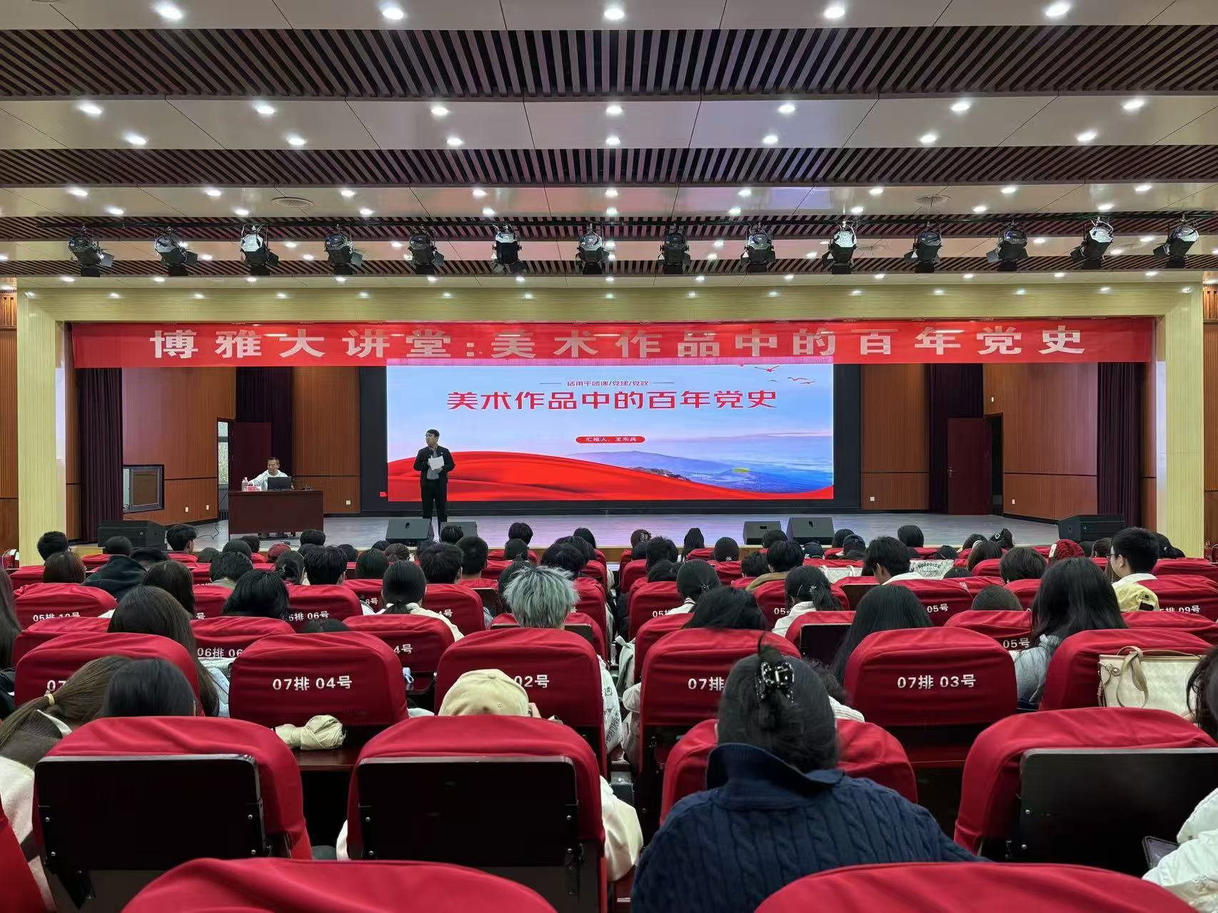 11月14日,由校团委主办,公海gh555000aa线路检测承办的公海gh555000aa线路检测第四十五期博雅大讲堂于东校区辰晖楼三楼青年之家举行。邀请公海gh555000aa线路检测副教授王东兵作题为“美术作品中的百年党史”的报告,由公海gh555000aa线路检测团委书记孔德滕主持,全校近300名员工参加本次活动。