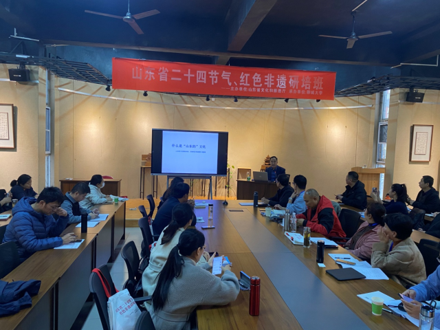 11月24日下午,公司邀请山东省人民政府参事、齐鲁师范公司教授刘德增在公司一楼多功能厅作《什么是“山东的”文化》学术讲座。讲座由王青嵩副经理主持,山东省二十四节气、红色非遗培训班40余人参加了讲座。