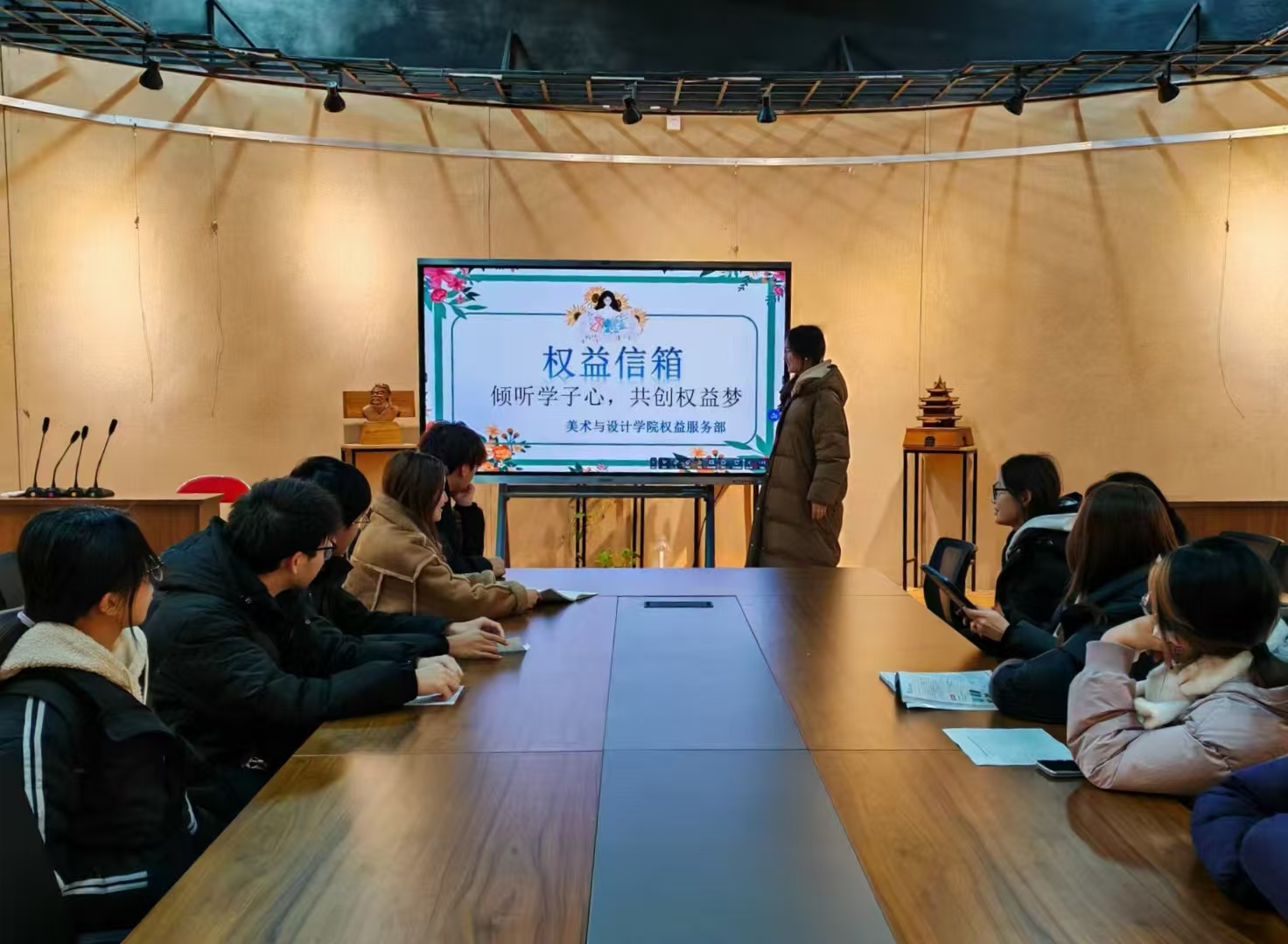 首先,活动在轻松的氛围中拉开帷幕。讲解人简单介绍了活动目的后,便邀请同学们畅所欲言。同学们一开始还有些腼腆,但随着几位同学勇敢地站出来分享自己在宿舍生活中遇到的诸如热水供应不稳定、网络信号差等问题,现场气氛逐渐热烈起来。随后,在交流过程中,权益保障部的成员们不仅认真倾听,还详细询问具体情况,做好记录,并针对一些能够当场解答的问题,立即给出了解决方案。例如,有同学提出校园公共区域卫生有待提高,工作人员当场表示会加强保洁人员的监督与管理。在活动结束后,权益保障部将收集到的所有问题进行分类整理,确保后续跟进解决。