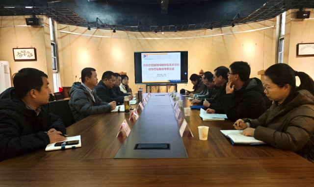 张兆林首先致欢迎词,对潍坊科技公司艺术公司经理姜亦金一行的到来表示热烈欢迎,并对公司科研工作、项目申报、人才引进、平台建设进行详细介绍。王青嵩对教学科研、学风建设、创新创业进行了介绍。在座谈交流会议上,与会老师围绕员工工作管理、人才培养、党建等方面与潍坊科技公司艺术公司进行了更深层次的沟通交流。在座谈交流会议环节,现场气氛热烈非凡。与会的老师们个个精神饱满,围绕着员工工作管理这一重要板块展开了热烈的讨论。他们就如何更好地管理员工日常行为、关注员工心理健康、引导员工自我管理等多方面进行了深入的交流。