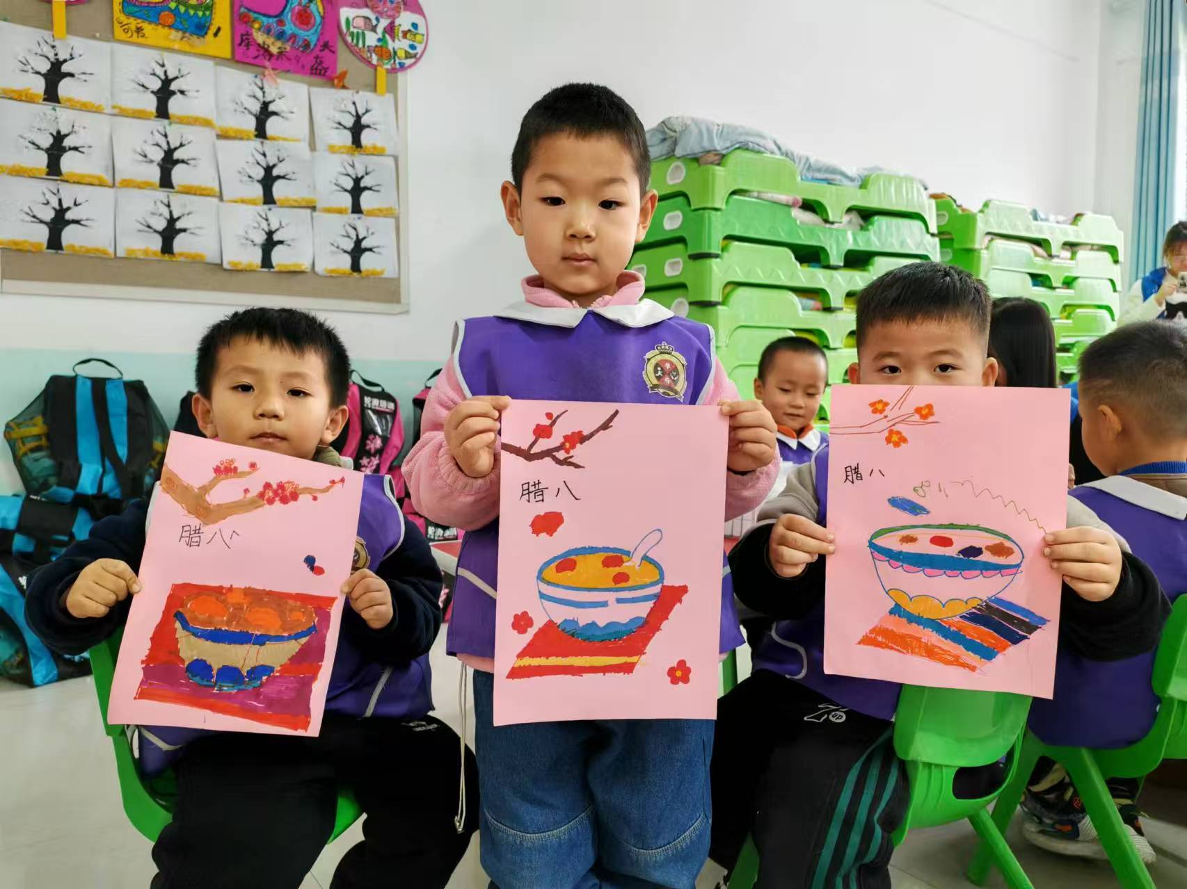 活动开始,志愿者们通过生动有趣的故事和图片,向孩子们介绍了关于腊八节的相关知识,让孩子们对腊八节有了初步的认知,随后,志愿者们开始教孩子们绘画腊八节相关的作品,在志愿者的耐心引导下,孩子们将腊八粥、腊八蒜等具有腊八节特色的元素呈现在画纸上,在漆扇绘画环节中,志愿者们先向孩子们展示了漆扇的美丽与独特,引起了孩子们浓厚的兴趣,志愿者们一步步地教孩子们如何在扇面上绘制图案并做了示范,孩子们充分发挥自己的想象力,大胆地在漆扇上进行创作。活动结束后,志愿者们组织拍照,孩子们拿着自己的绘画作品和漆扇和志愿者们一起合影留念。