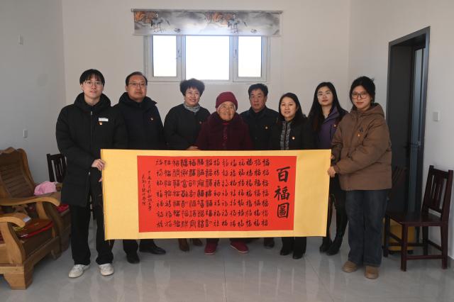 戴里庄村的黄立英和范之贞两位老人这天正好分别过93岁和84岁生日,支部书法专业员工党员专门为老人们书写了“百福图”,并用员工党支部自发组织的“美益角”基金购买了年货,一起为她们送上最真诚的祝愿。支部自2024年3月联建共建启动以来,已经为28位80岁以上老人送去了“百福图”,同时也送出了28份美好的祝福。