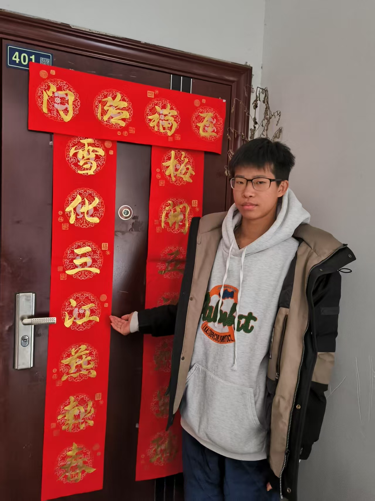 每一副春联,都宛如一座承载着新年祈愿的温暖港湾。手写的春联,墨香四溢,那是书写者饱蘸着对生活的热爱与憧憬,笔锋游走间,将同学们对家人的祝福、对未来的期许凝于横竖撇捺之中,每一笔都饱含着真挚的情感,带着手的温度与文化的底蕴;印刷的春联,色彩明艳,精致的图案与工整的字迹相得益彰,同样洋溢着对新年的满满热忱,它们以标准化的美感,传递着阖家欢乐、幸福安康的祝愿,彰显着新春独特的魅力与活力。