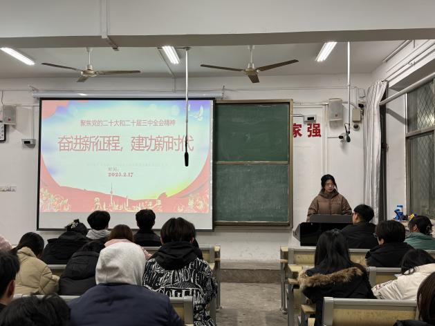 在活动中,主讲人深入解读党的二十大和二十届三中全会精神,全面剖析了新时代的发展机遇与挑战,让同学们对国家的发展战略有了更为清晰的认识围绕全会精神,更加坚定了“四个自信”,增强了“四个意识”,深刻领悟“两个确立”的决定性意义,切实做到“两个维护”。同学们还共同观看了权威解读党的二十大和二十届三中全会精神的视频,视频中,专家学者深入浅出的讲解,配合丰富的影像资料,全方位、多角度地呈现了会议的核心要点和深远影响。从国家重大战略的推进,到人民生活的点滴变化,同学们透过视频,更加直观地感受到了新时代的发展脉搏,深刻理解了党和国家为实现民族复兴所付出的努力。